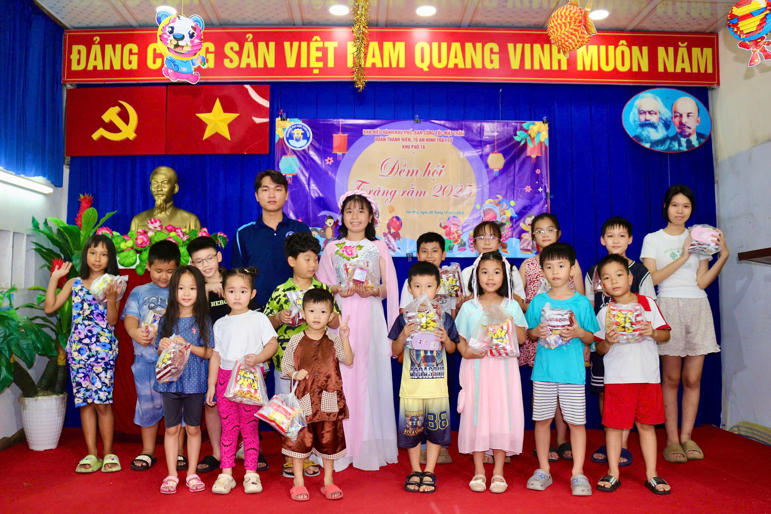 Ho Chi Minh City – On the joyful evening of October 5, students from the Faculty of Information Technology – Van Hien University (VHU) brought smiles and happiness to children in Quarter 16, Tan Phu Ward through the charity event “Mid-Autumn Festival for Children 2025.” The night was filled with colorful lights, laughter, and the warmth of love and community spirit.